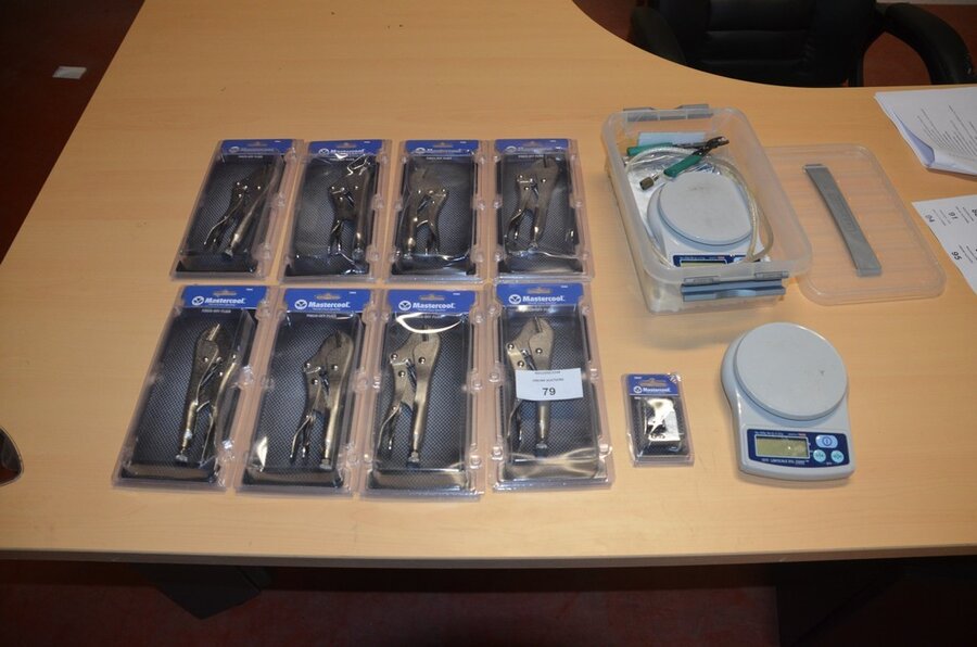 8 afknijptangen MASTERCOOL NIEUW, mini buizen snijder NIEUW, 2 digitale weegschalen (b423)