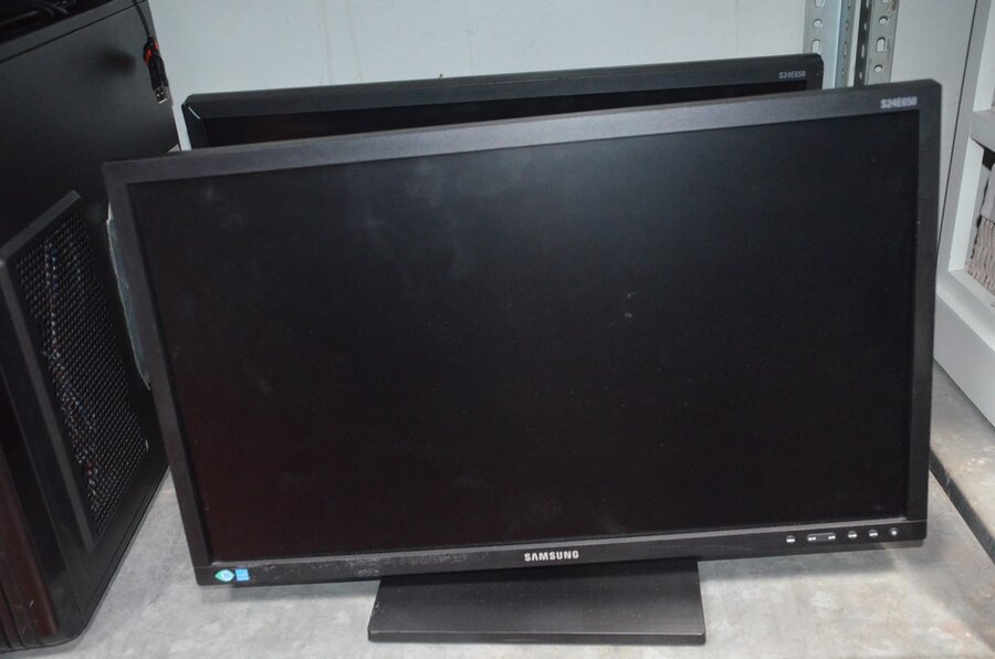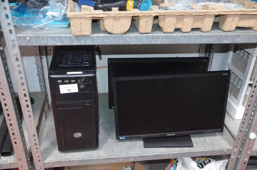 2 Monitors SAMSUNG S24E650, centrale eenheid COOL MASTER, toetsenbord