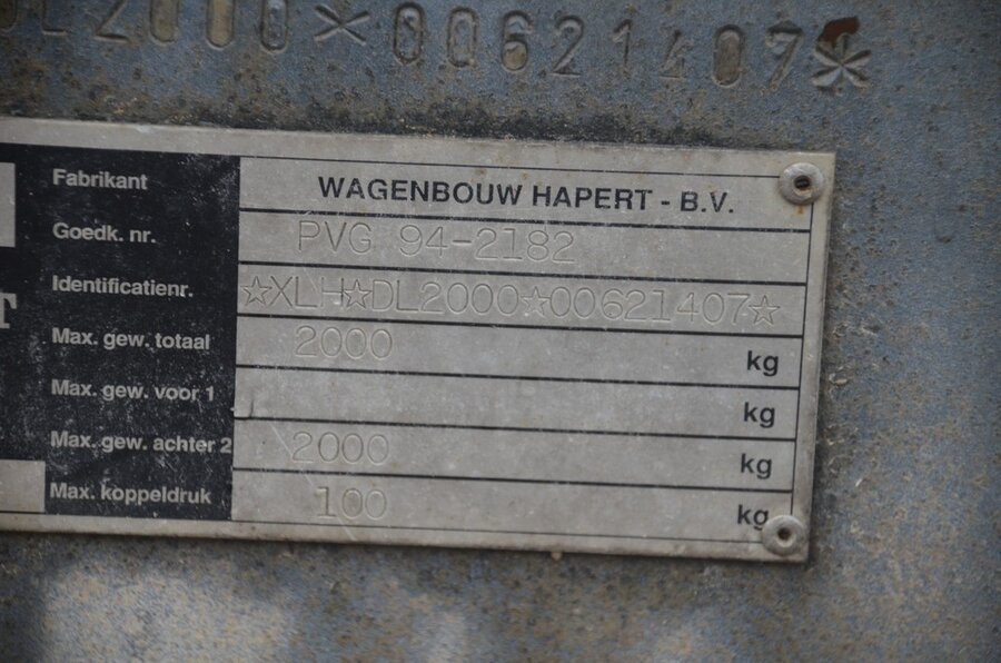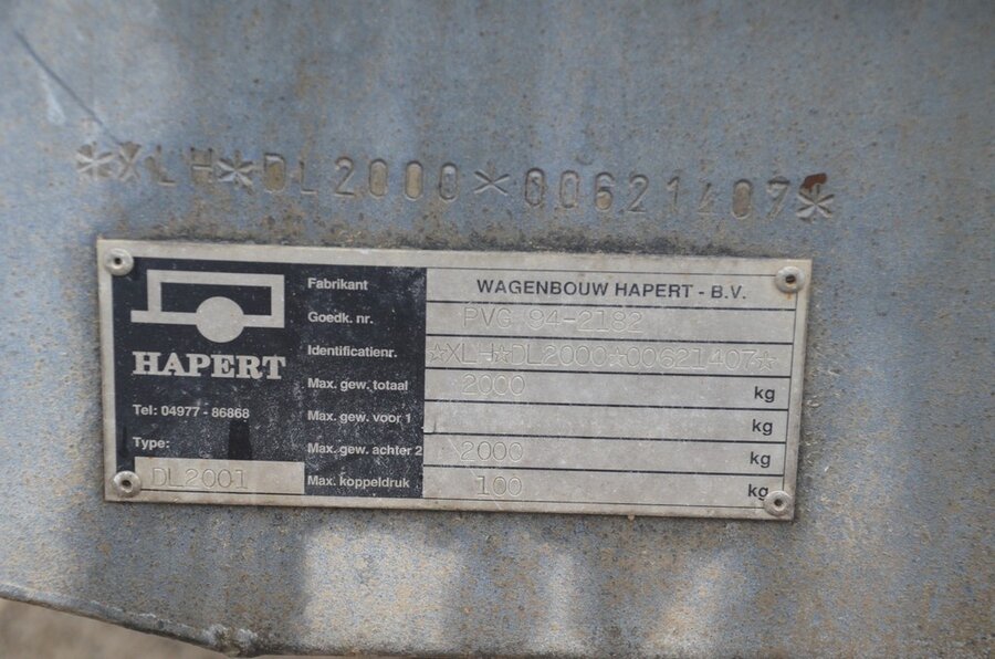 Aanhangwagen HAPERT type KF27 met 2 assen en zeil, ch.nr. XLHDL200000621407 (met Nederlandse nummerplaat)