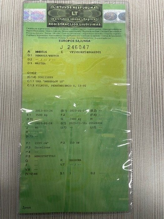 Bestelwagen RENAULT MASTER met zeil en slaapcabine,ch.nr. VF1VBU4F248646901, bj. 17-01-2017(Litouwse nummerplaat)