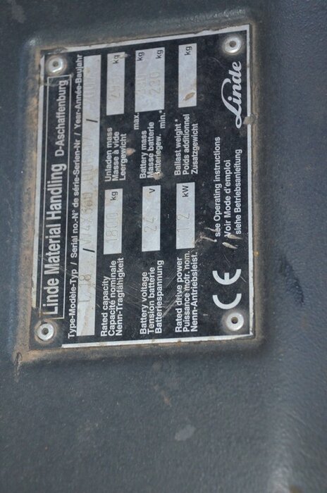Elektrische palletwagen PRO LINDE T18 met lader, serienummer W4X360U06317, bouwjaar 2007 met lader , batterijlader NUOVA Elettra serienummer 22012178